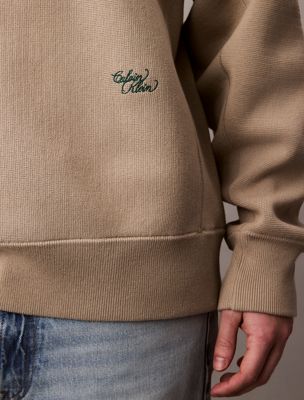 From Calvin Klein Studio. Inspired by craft and premium materials. The relaxed sweatshirt in a soft cotton blend. Textured with ribbed panels