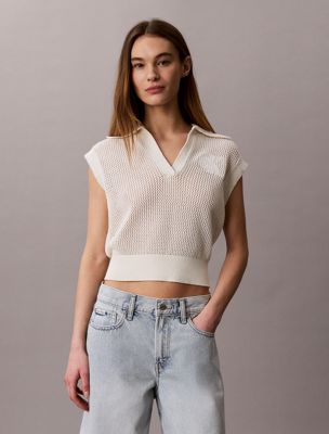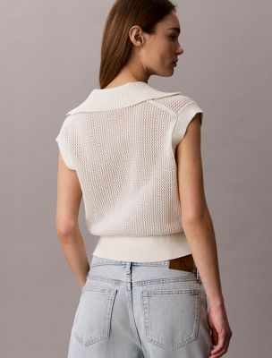 Cropped Crochet Polo Vest