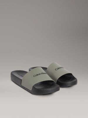 • Calvin Klein embossed logo on the strap, footbed and heel