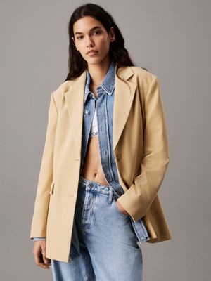 This blazer is made with 75% recycled fabric, created by reprocessing existing materials.