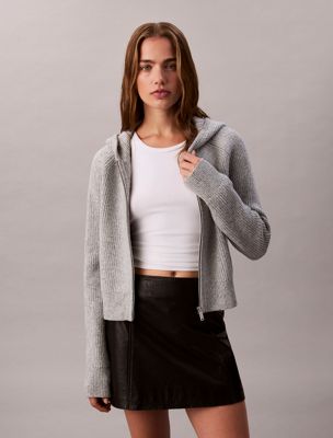 • ribbed knit trim at cuffs and hem