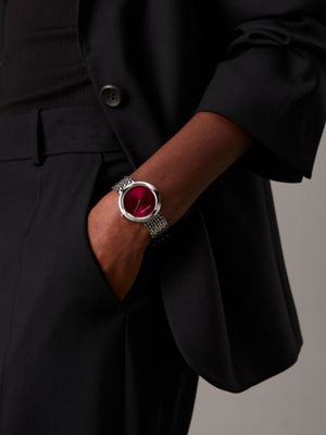 A sophisticated design with an alluring twist. This watch features a minimalistic sunray dial with a seamlessly integrated bracelet for a modern look. Finished with a contoured twisted bezel and simple 2-hand styling.